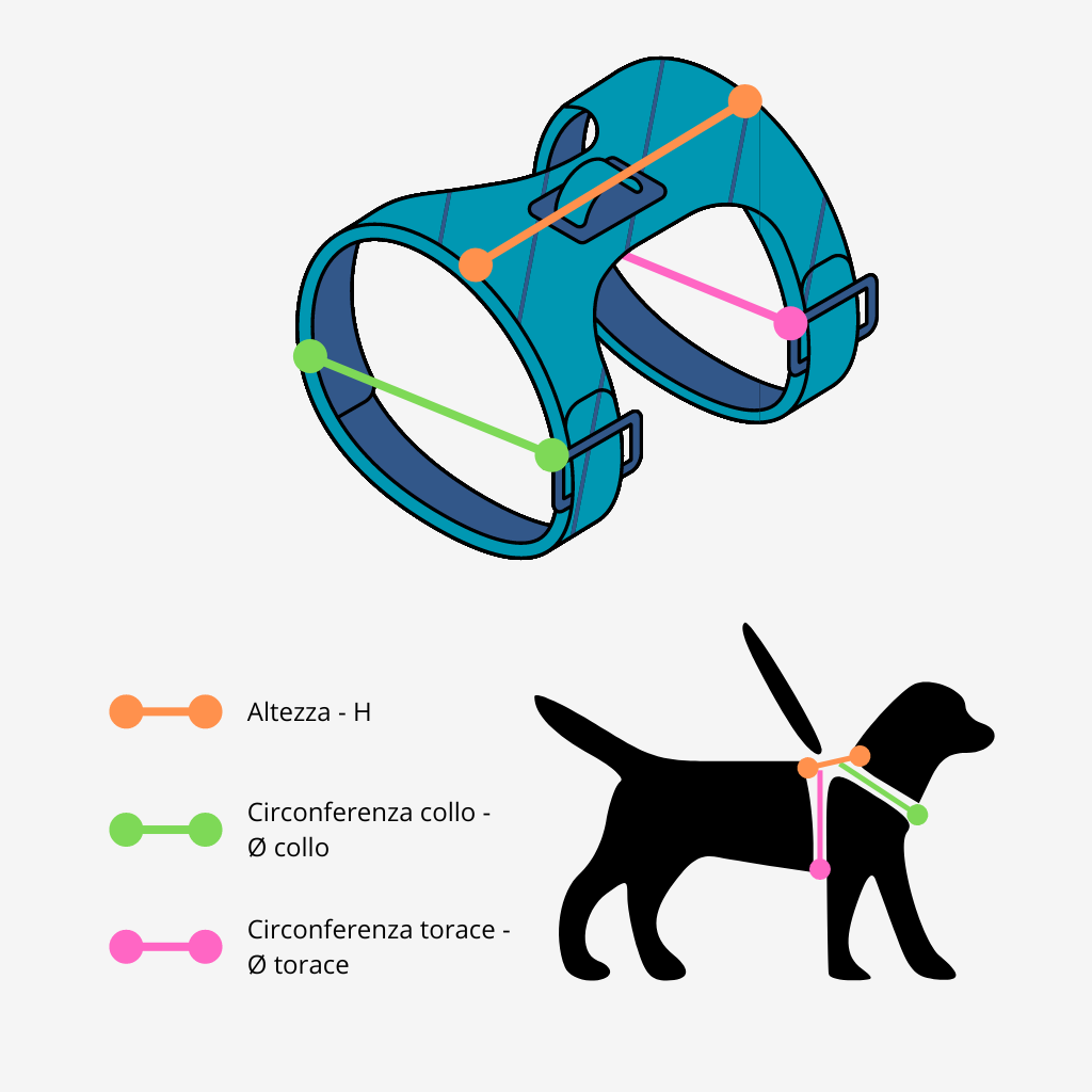 La cosa migliore è prendere le misure del tuo 4zampe seguendo le indicazioni qui sotto ed aggiungere un paio di centimetri di abbondanza.